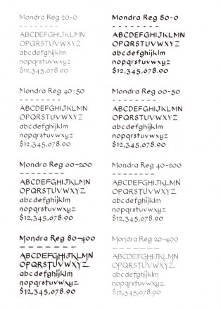 I feel very honored to receive the TDC Prize for my typeface. The font is called »Mondra«—an anagram of »random«. I created this typeface to imitate the appearance of handwriting. Each stroke style and downstroke of the characters as well as some character forms are randomized via a script. Just like actual handwriting, no two letters are identical. The variable downstrokes transport various emotions according to their lengths – from precise and timid to brash and confident. I designed and coded the typeface using PHP/PDFlib.