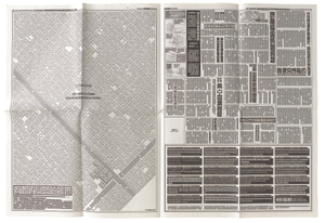 If these characters were laid out with no apparent connection, you might only see random patterns. But I was surprised to discover that once these characters were brought together within a shape that we were familiar with (a newspaper in this case), people began to recognize them as text. They discovered words that they were able to make out and were actually able to read the text. This work lies on the boundary between what people see as patterns and what people see as functional letters. So this is a font and it is also handwriting in the realm of digital text entry.
